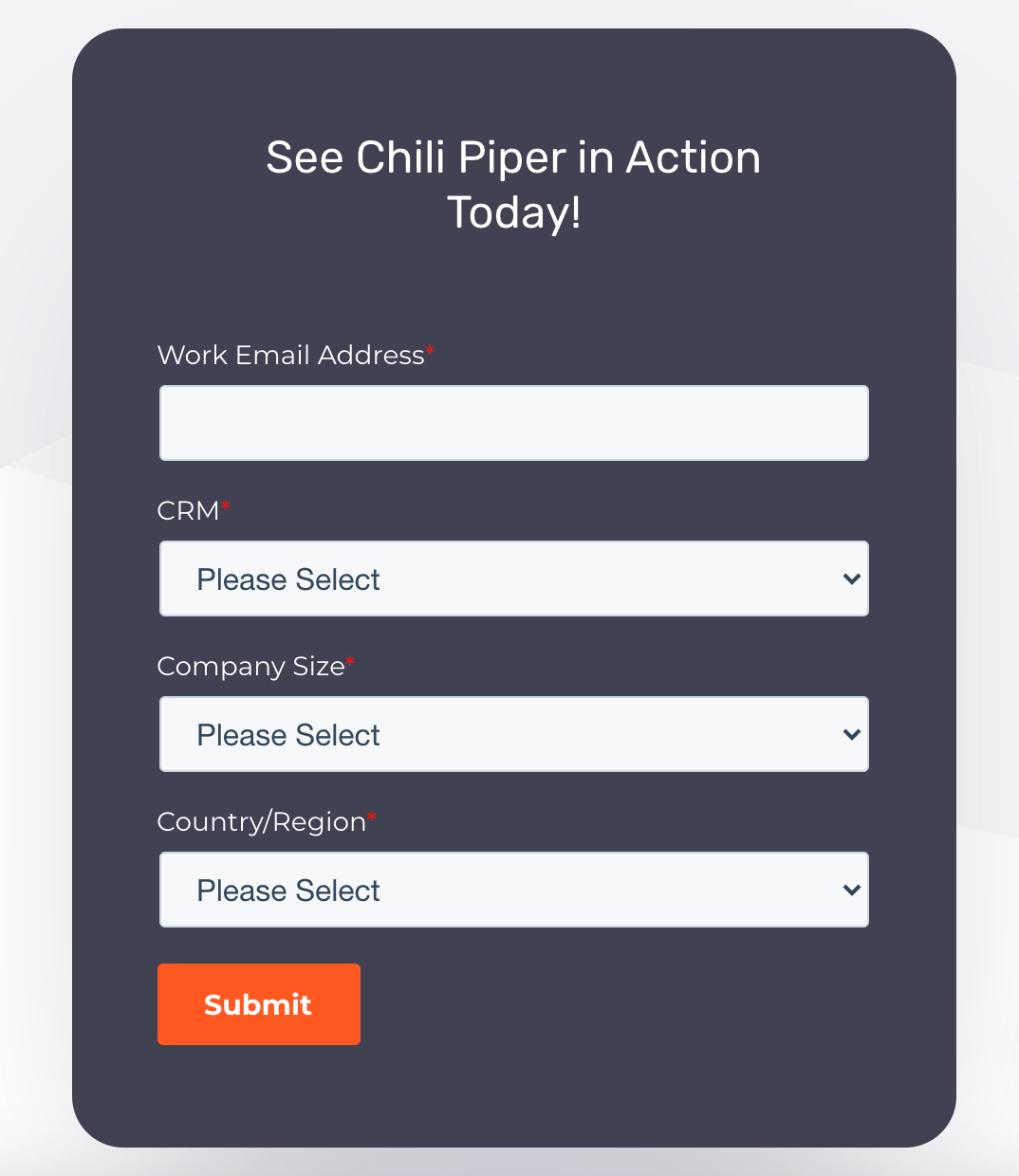 For example, whenever a prospect asks for a demo from Chili Piper, we ask for the CRM they’re using, their company size and country/region.