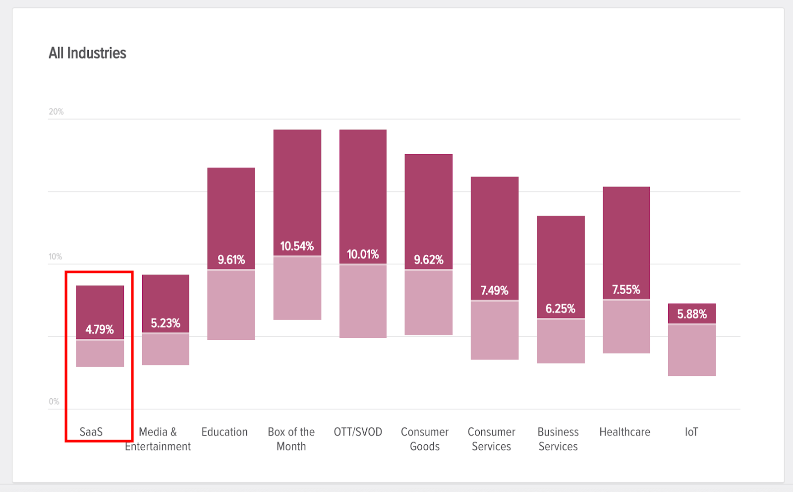 The average churn rate for SaaS companies across the board is 4.79%.