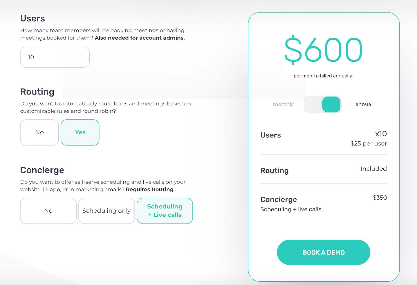 If it was scheduling plus live calls, it would be $600 per month.