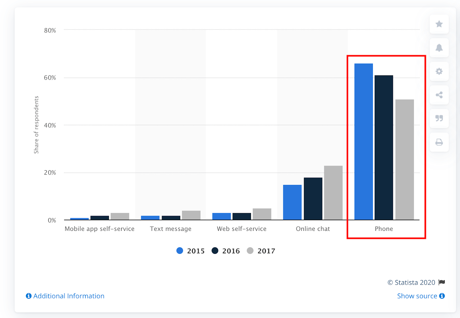 Research from Statista found that the majority of customers still consider the phone to be the best communication channel for resolving issues.