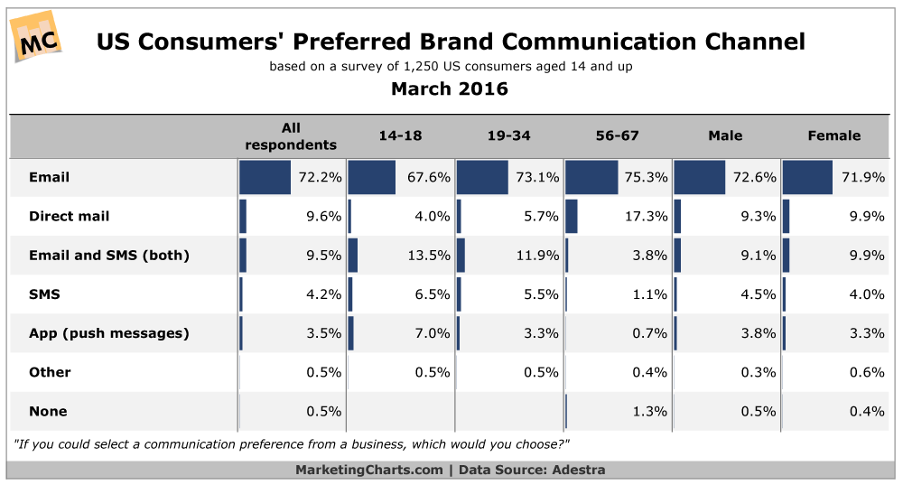 When it comes to general communication, such as keeping customers updated on news, offers, discounts, etc., more than 7 in 10 prefer to communicate via email.
