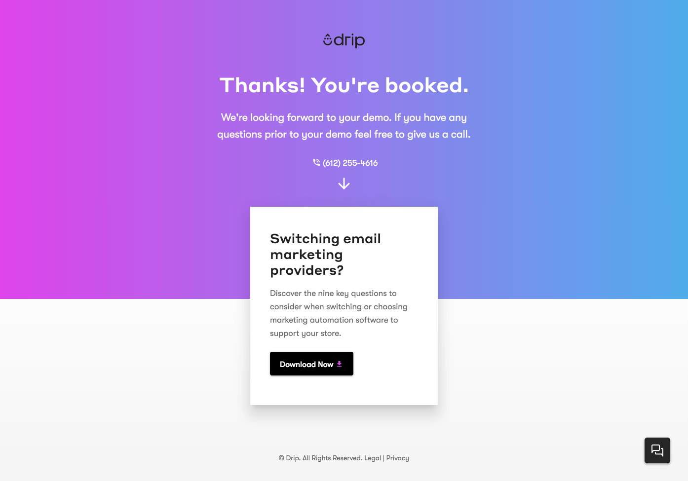 So instead of the typical “thanks, we’ll call you when we have a minute” you’re used to seeing on a thank you page, our customers are keeping their leads engaged and giving them the ability to take the next step after requesting a demo or asking to speak with sales.