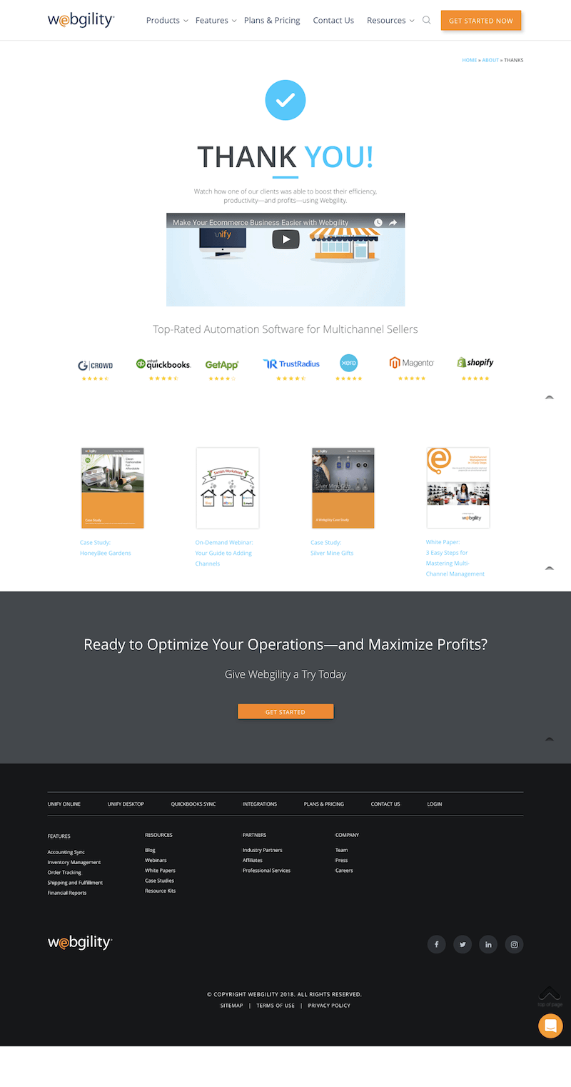 Then after their future customer has taken the next step, they deliver an awesome thank you page that (again) keeps you engaged with their company.