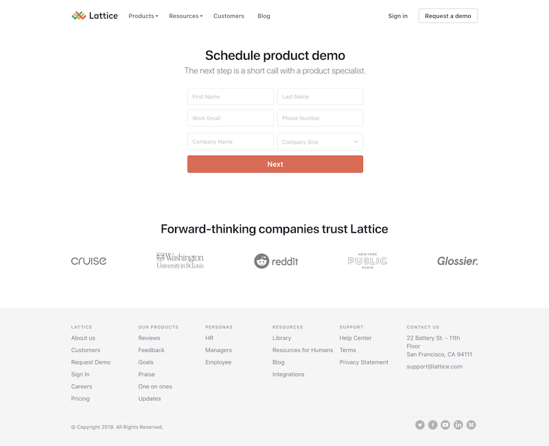 If I click Get a Demo on their homepage, I’m taken to this landing page: