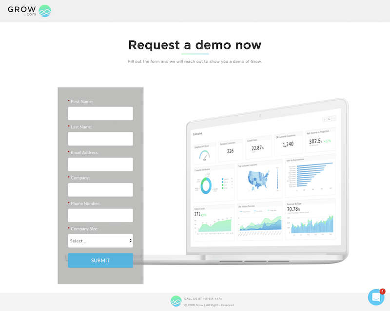 Like many B2B companies, Grow’s main call to action on their website is to get a demo.