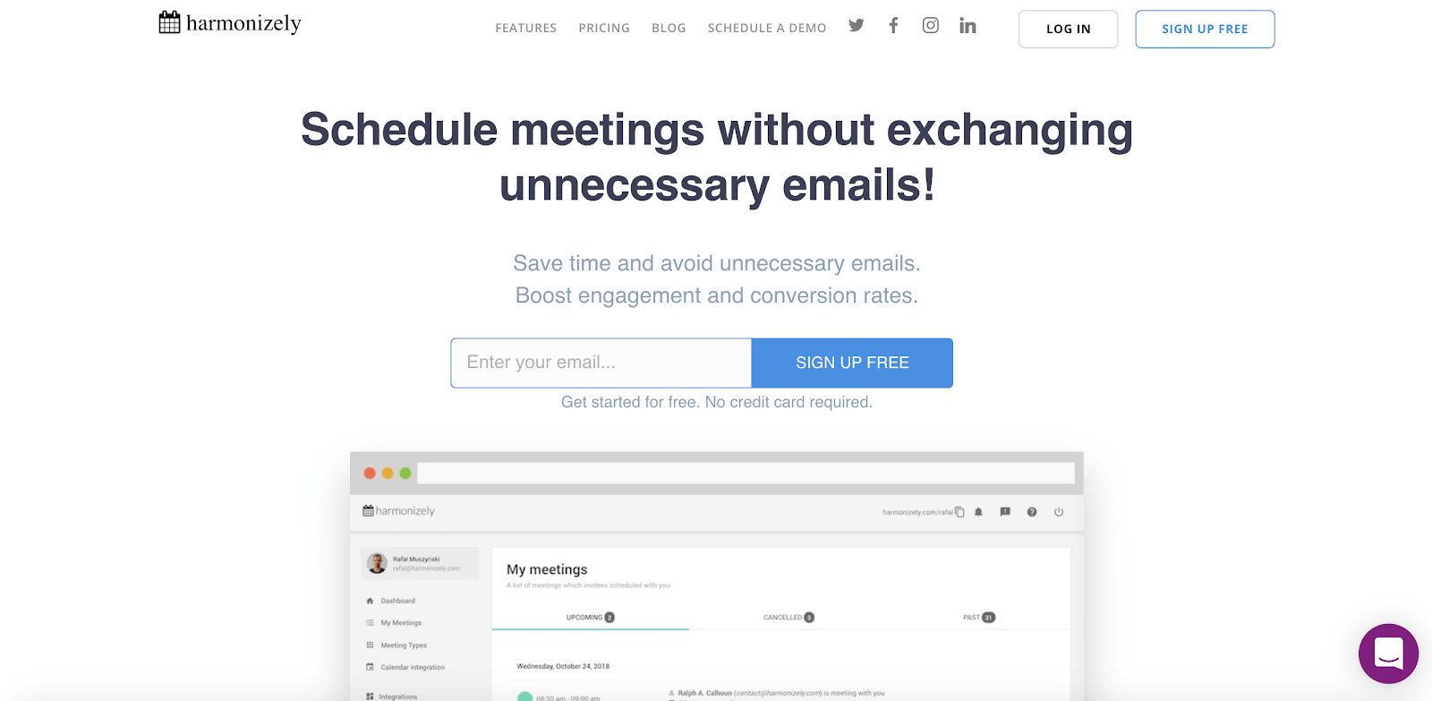 Harmonizely is an online scheduler that was specifically built to help reps “schedule meetings without exchanging unnecessary emails.”