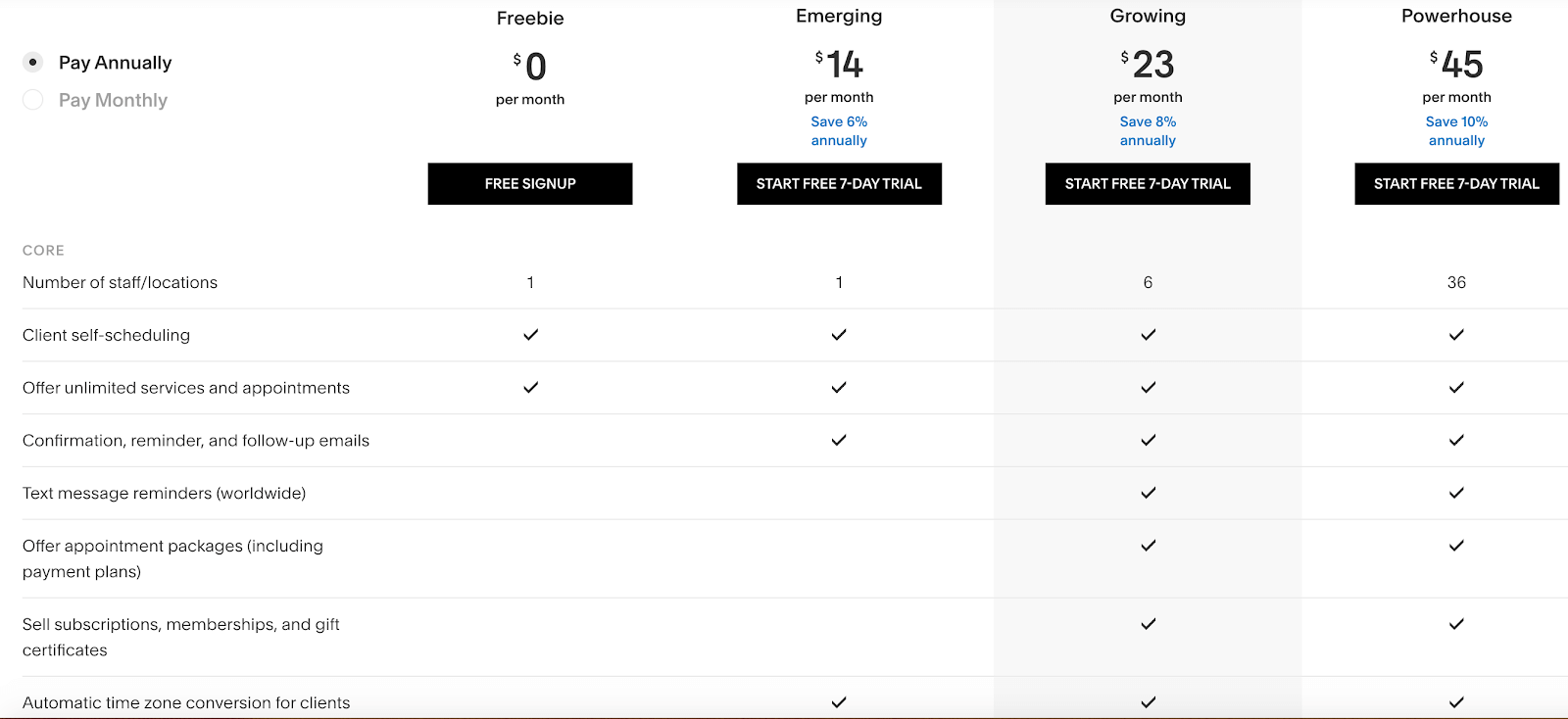 Also, note that Acuity Scheduling does offer unlimited appointments for free.