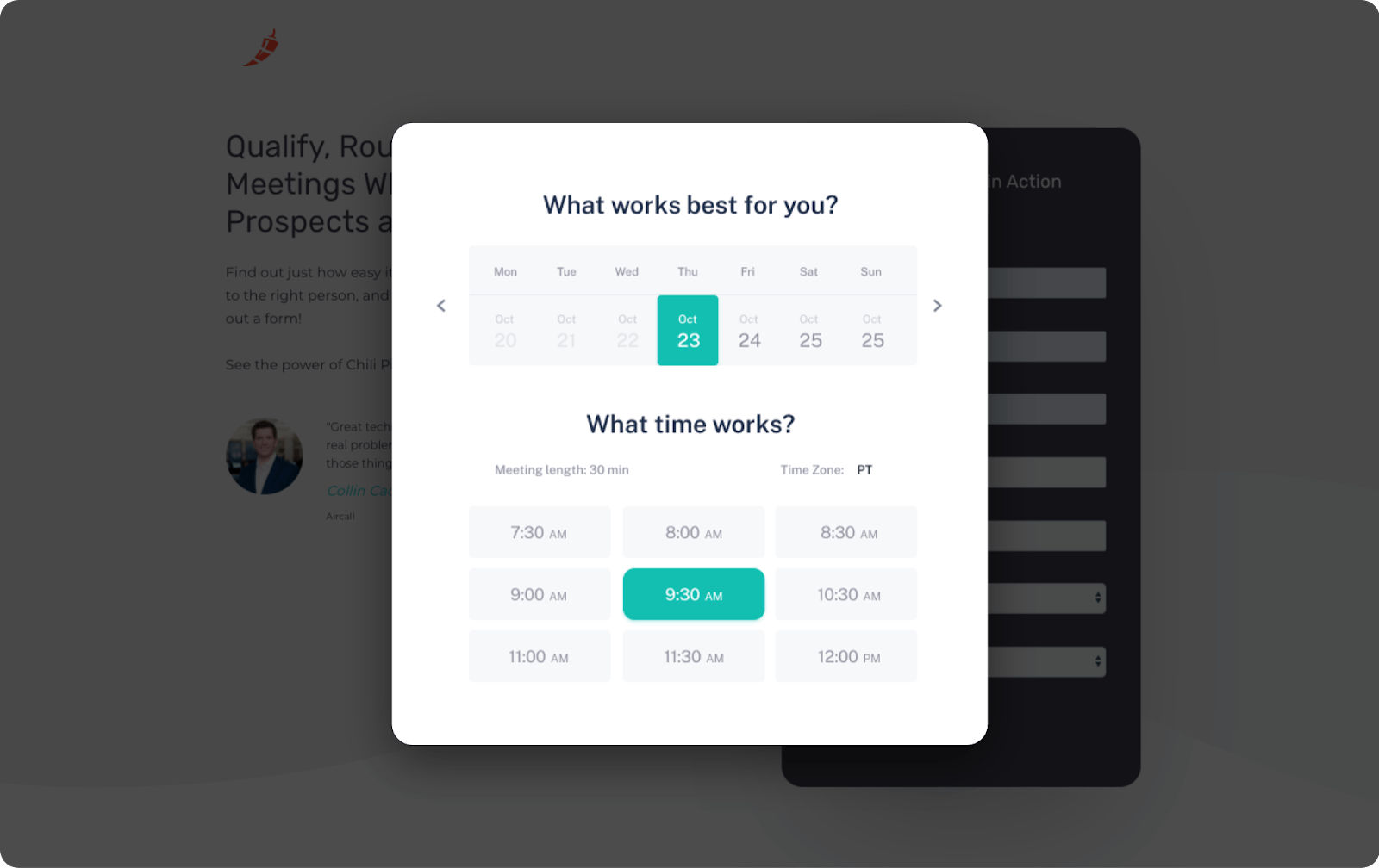 One of the products that Chili Piper offers is an appointment scheduling app. It’s similar to something like Calendly, but far more robust, feature-rich, easy-to-use, and ultra-functional.