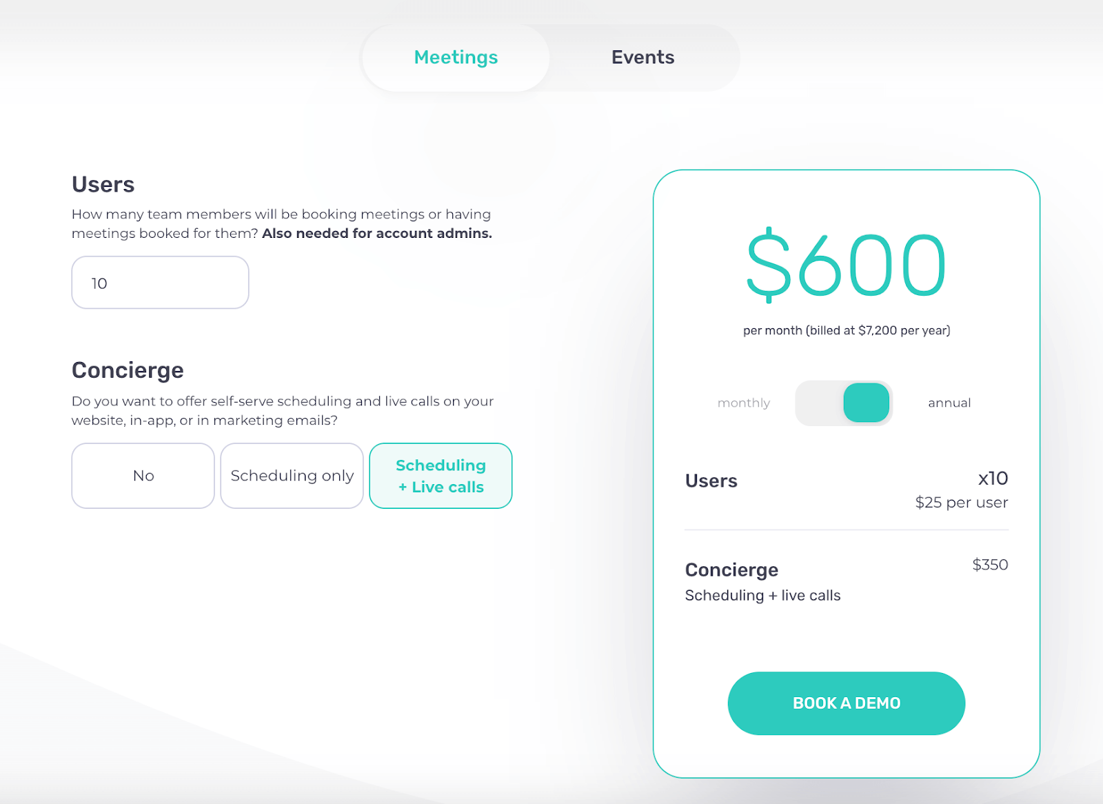 And scheduling + live calls would cost $600 per month.