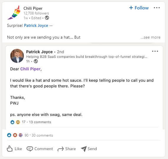 HubSpot has its own audience, but like Facebook lookalike audiences, they share traits with Chili Piper’s audience. Now the two groups are introduced to a new-to-them brand. It’s win-win-win (for the end user, Chili Piper, and HubSpot).