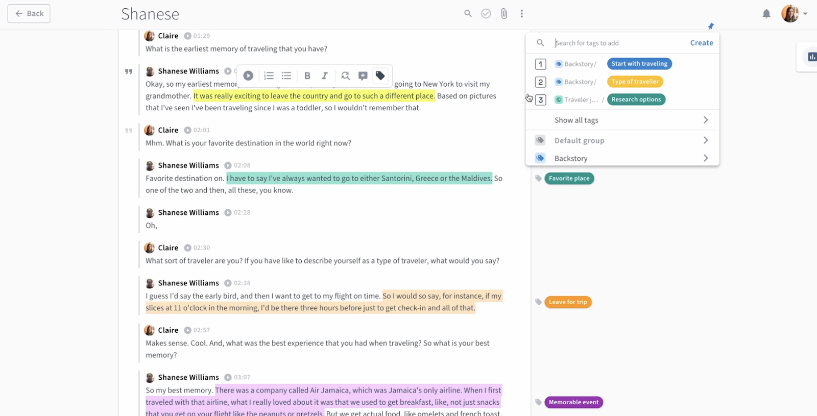 With a research repository, you can transform your customer interactions into an ever-updated space for this valuable information to live and be accessed on-demand. Research repositories offer the ability to ‘tag’ session transcripts, notes, or video clips. Using tags that you can define at a project level as well as globally, you can better structure your data and prepare it for further analysis.