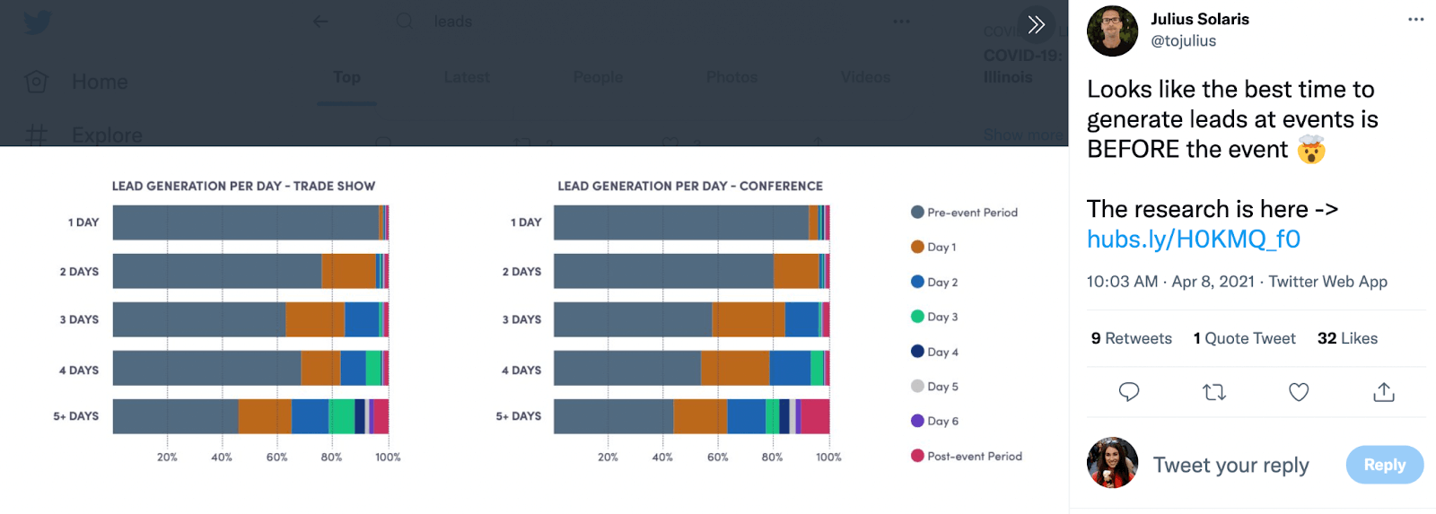 Take a look at these numbers on when the best time to generate leads at an event is. 👀