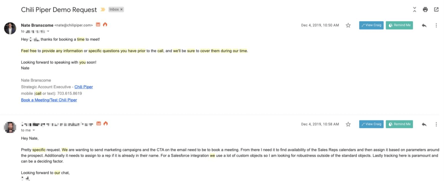 However, that doesn’t necessarily mean your meeting is 100% locked down. We recommend pre-qualifying your prospect yourself with a quick call or email when a meeting is scheduled. Here’s an example of an effective follow-up once a meeting is booked.