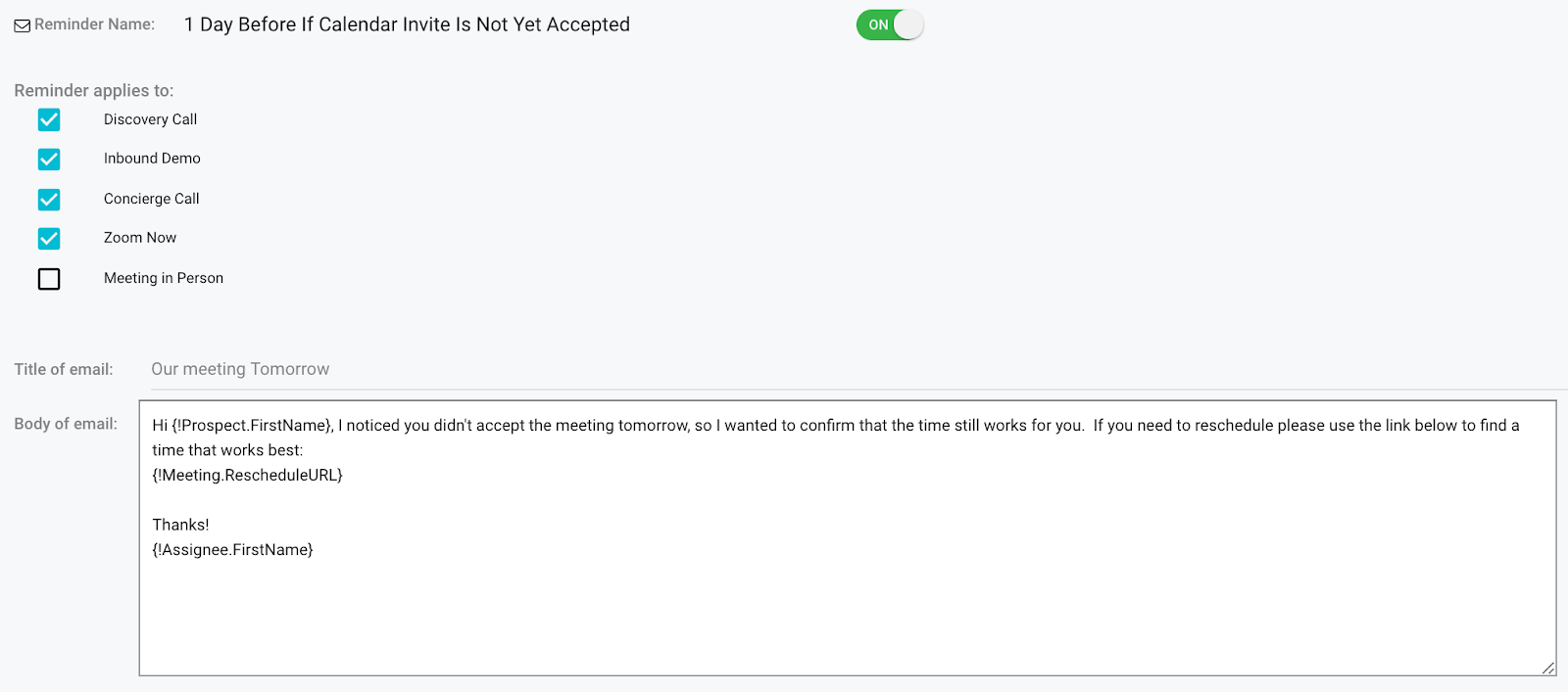 And note that our reminders aren’t some sort of masterclass in copywriting, either. Here’s an example of our 24-hour reminder sent to prospects who haven’t accepted the calendar invite, for reference.