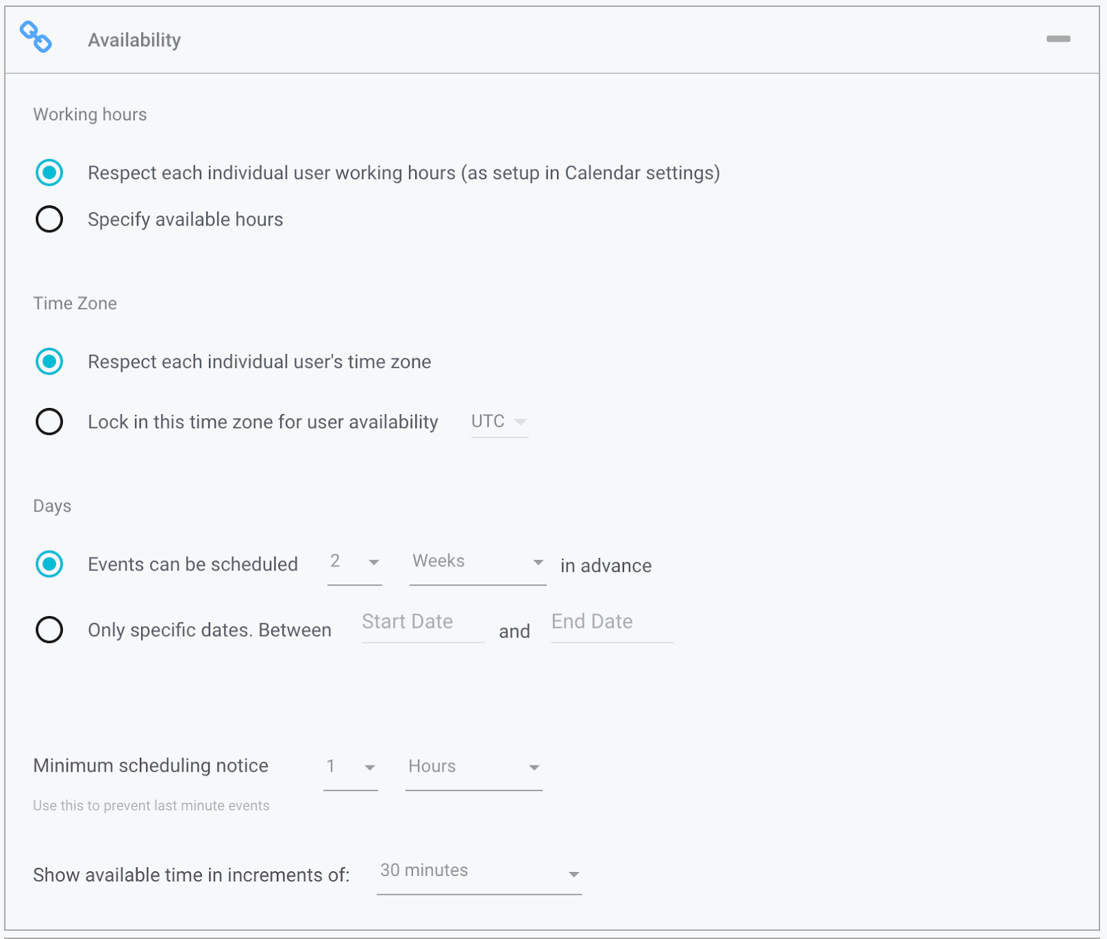 In Chili Piper, you can establish and customize how far out in advance someone books with you based on your meeting type. On the flip side, you can provide a minimum amount of time required between bookings and meetings so you don’t run into surprise meetings or are stuck with no time to prep.