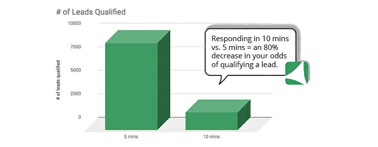 According to recent speed to lead statistics highlighted by Chili Piper, the odds of qualifying a lead drop a staggering 80% after five minutes of no outreach.