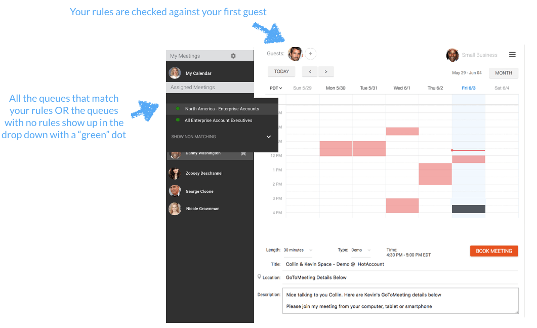 As noted earlier, leads can only book based on your routing rules and availability settings. This means defining your reps’ schedules, roles, seniority, and so on.