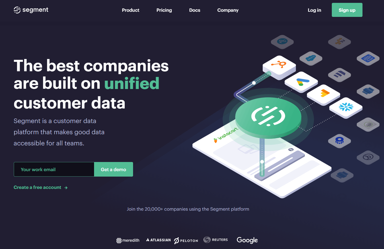 For example, check out how Segment puts their schedule-related call to action front-and-center by inviting visitors to book a demo.