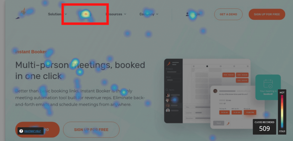 In the heatmap below, you’ll see that the most clicks on this landing page are on the pricing link at the top.