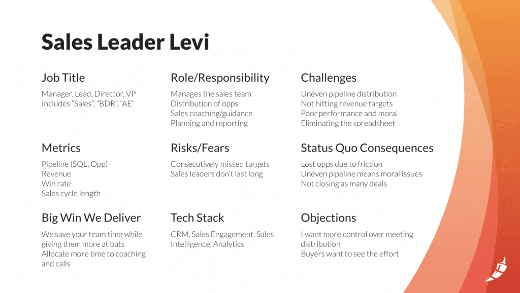 Below is an example of how we’ve defined one of our target personas, the sales leader.