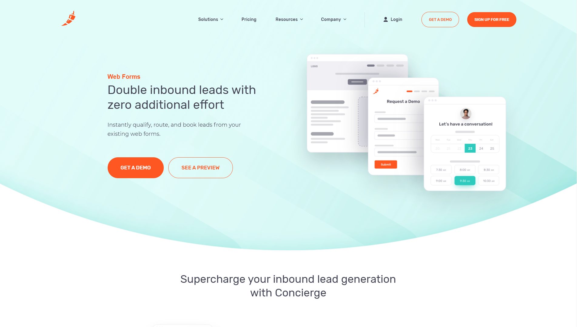 Our Concierge product gives users the ability to optimize their web forms to qualify, route, and book leads — instantly.