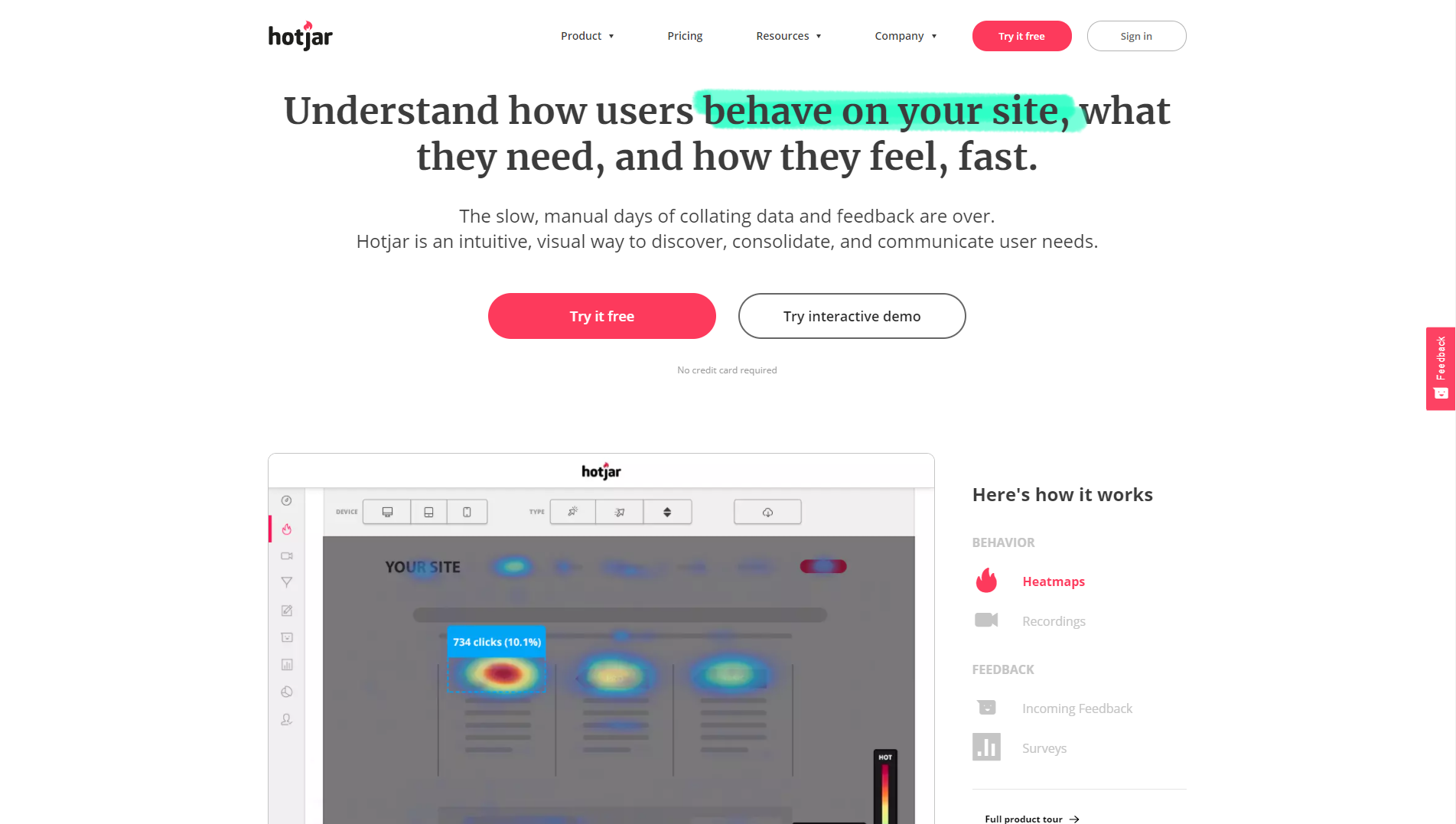 Hotjar uses heatmaps that allow you to view what visitors are doing when they arrive on your landing page.