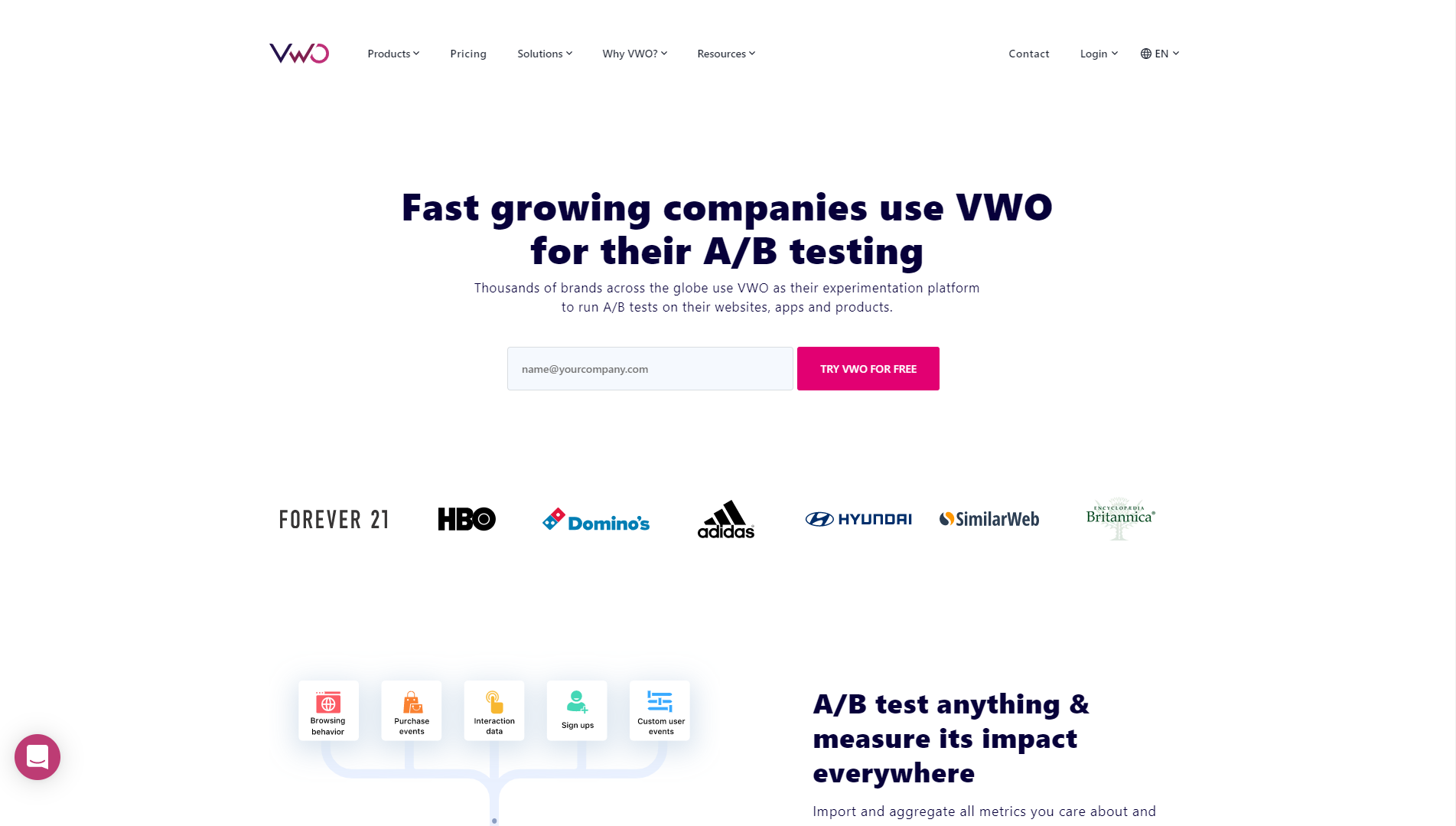 Visual Website Optimizer (VWO) also gives users the ability to conduct A/B testing on landing pages.