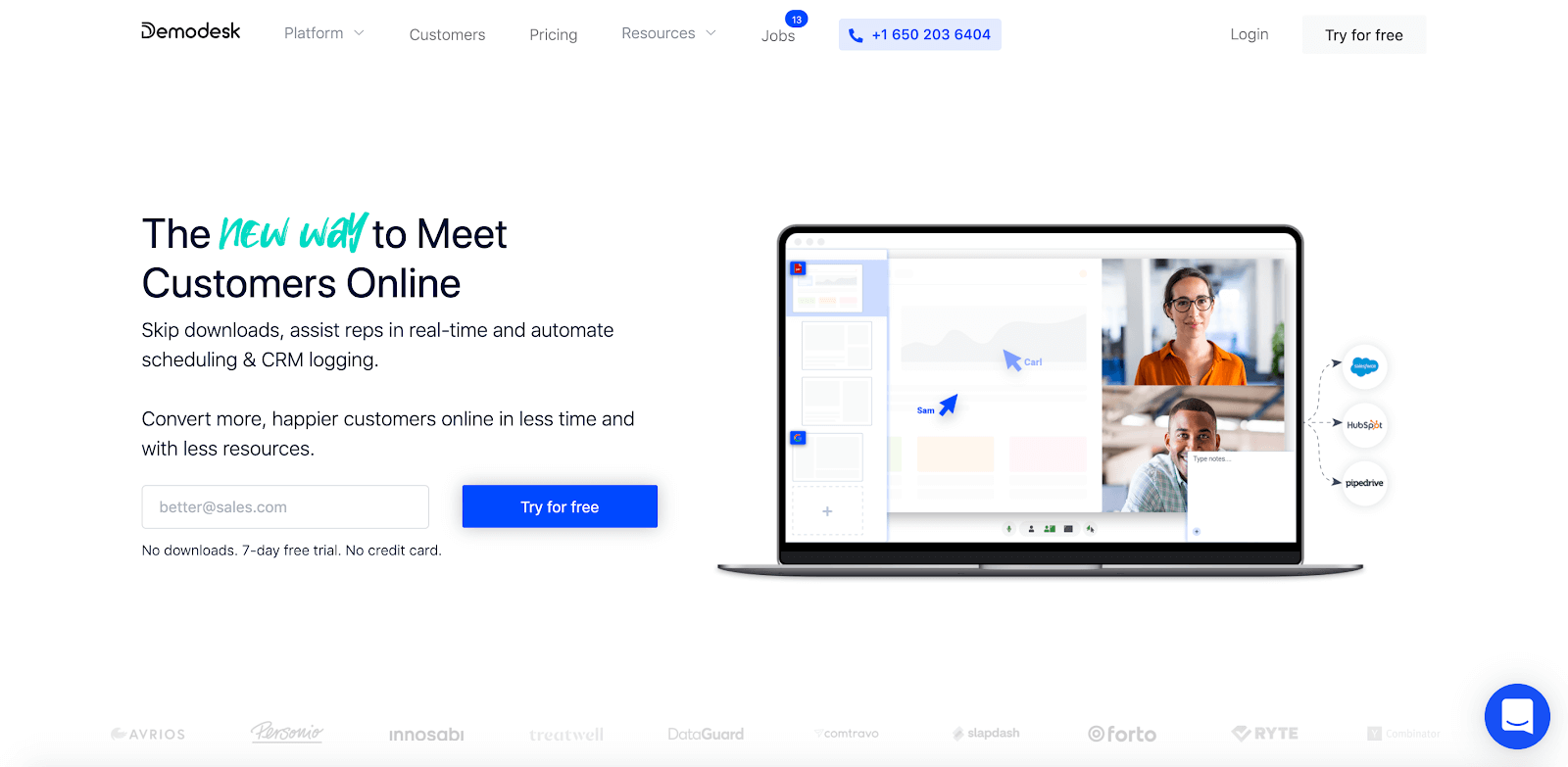 Demodesk also has several integrations with platforms like Salesforce, Google Suite, Microsoft Suite, and HubSpot.