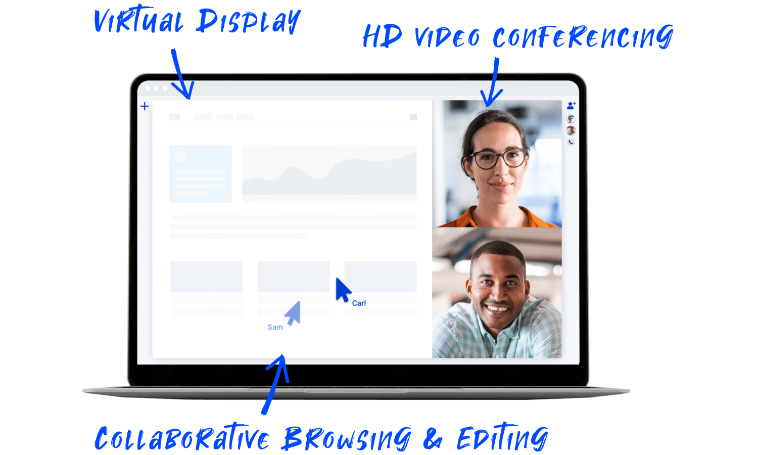 Your team can “use a secure virtual screen to present websites, slides, and more. Instantly share control and use built-in HD conferencing for more engaging meetings.”