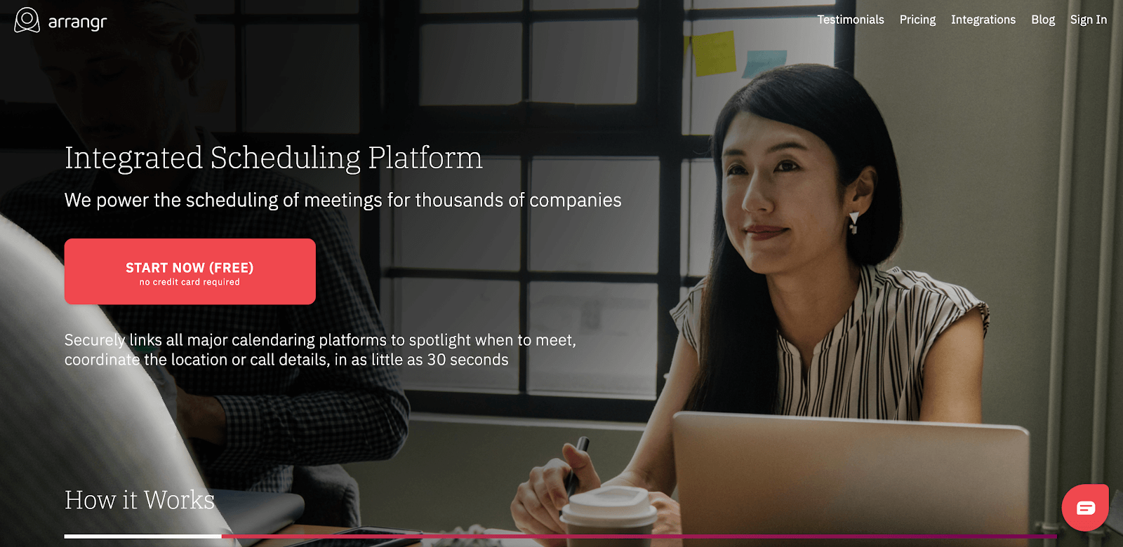 To use Arrangr, have your sales reps connect their calendar — Arrangr integrates with Google and Microsoft— and leads can select a time based on their availability.