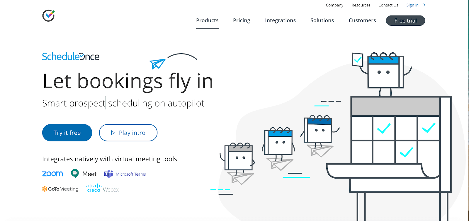 In terms of integrations, ScheduleOnce works with Gmail, Google and Office 365 Calendar, Salesforce, Google Meet, Zoom, GoToMeeting, and much more.