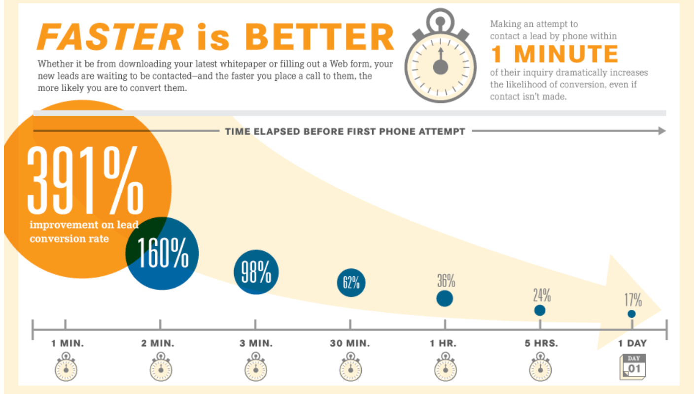 If the first phone attempt happens within 1 minute, companies see a 391% improvement on their conversion rate.