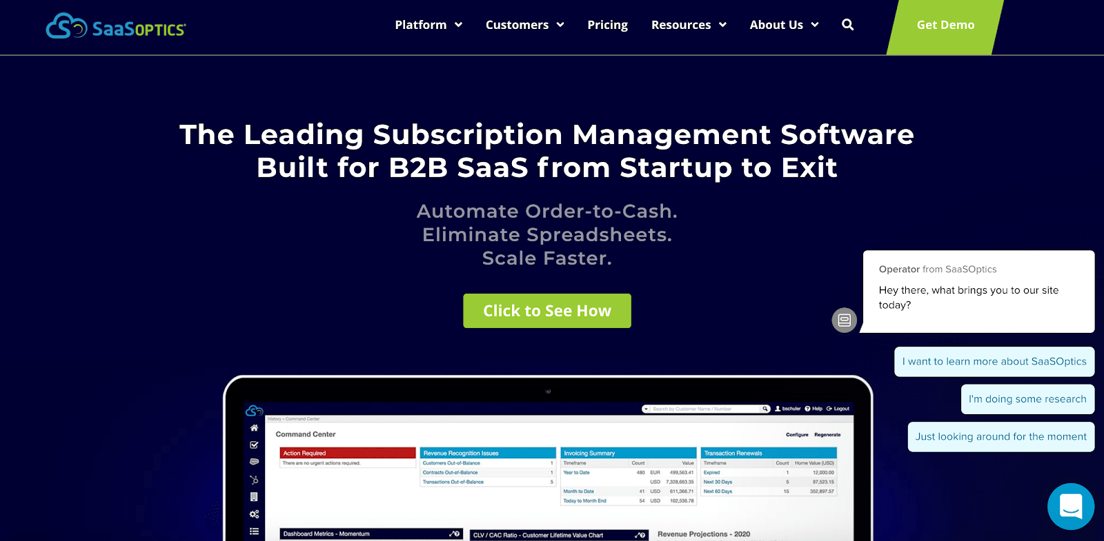 SaaSOptics is a top subscription management platform that helps companies automate order-to-cash, eliminate spreadsheets, and scale faster.