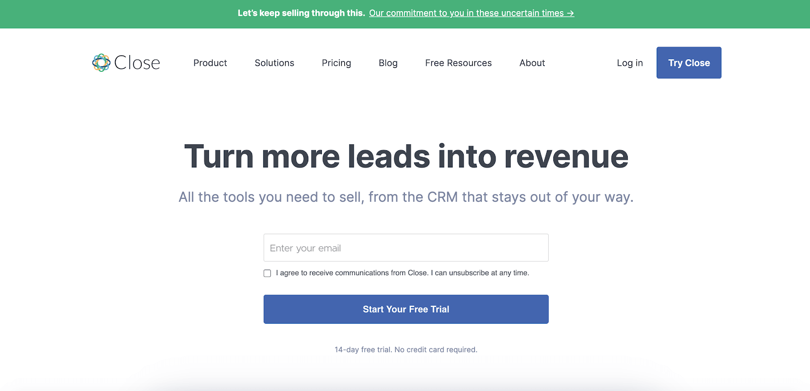Close.io is a potent CRM that “stays out of your way” and does much of the heavy lifting for you.