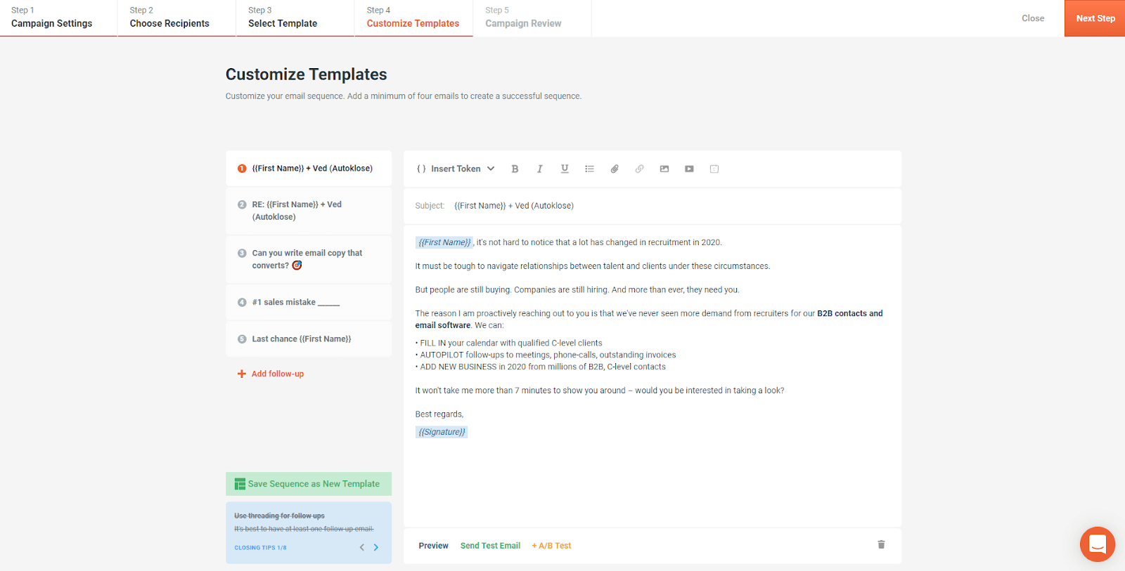 Then, Autoklose will send an automated sequence of emails using the templates that convert the best.