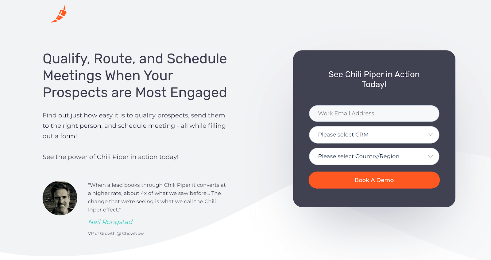See how Chili Piper can help you qualify, route, and schedule more meetings. Just fill out the form below, and you’ll discover a powerful new way to enhance your sales process.