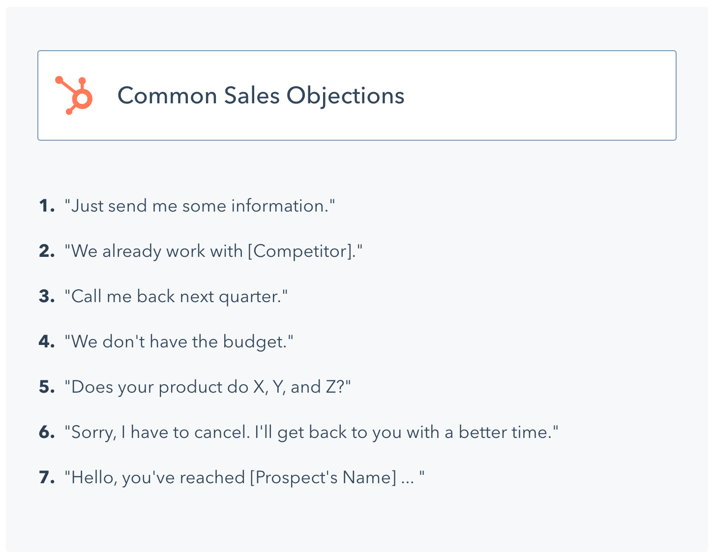 But let me share with you seven of the most common sales objections reps will encounter, according to Bryan Gonzalez of HubSpot.