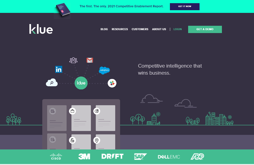 That’s when Klue comes to the rescue. It provides intelligence about the competitor, organized into “cards,” so your reps can handle objections and leverage the strengths of their solution on the fly.