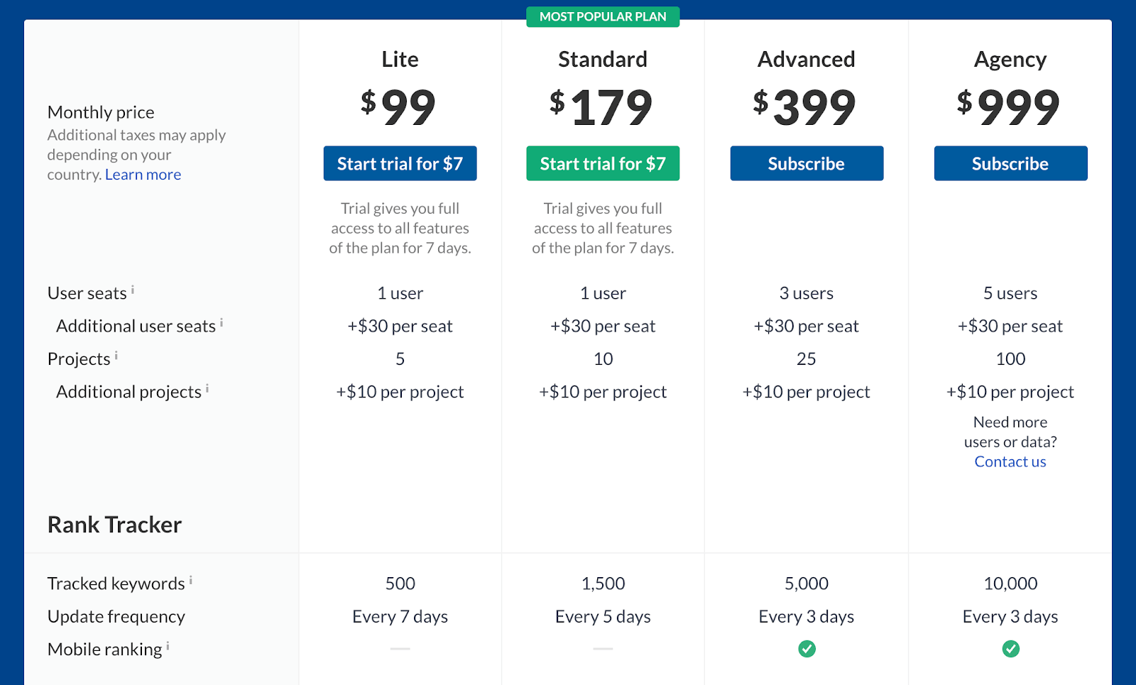 So, if Ahrefs was trying to persuade a customer to upgrade from their “Lite” package to their “Standard” package, they could direct them to this page for a quick rundown.