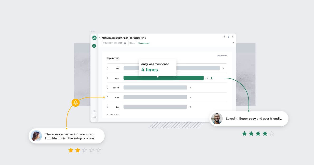 Companies collect voice of the customer feedback at all stages of a customer’s journey. Get customer opinions at the start, after a purchase, when they’re signing up or when they’re canceling.