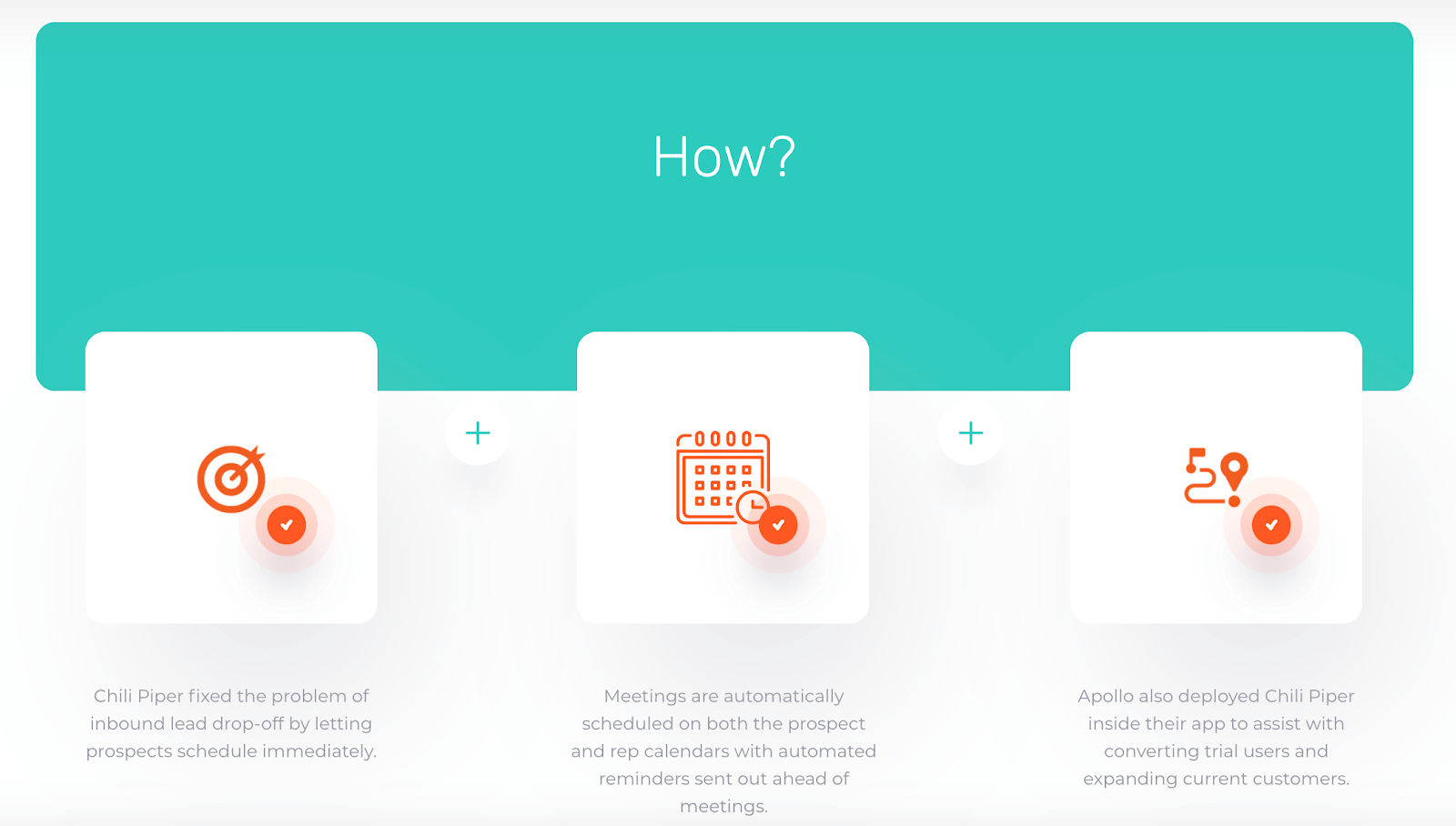 Here it explains the problem Apollo used to have with their leaky sales funnel, where about 40% of their inbound demo requests were failing to convert to booked meetings.