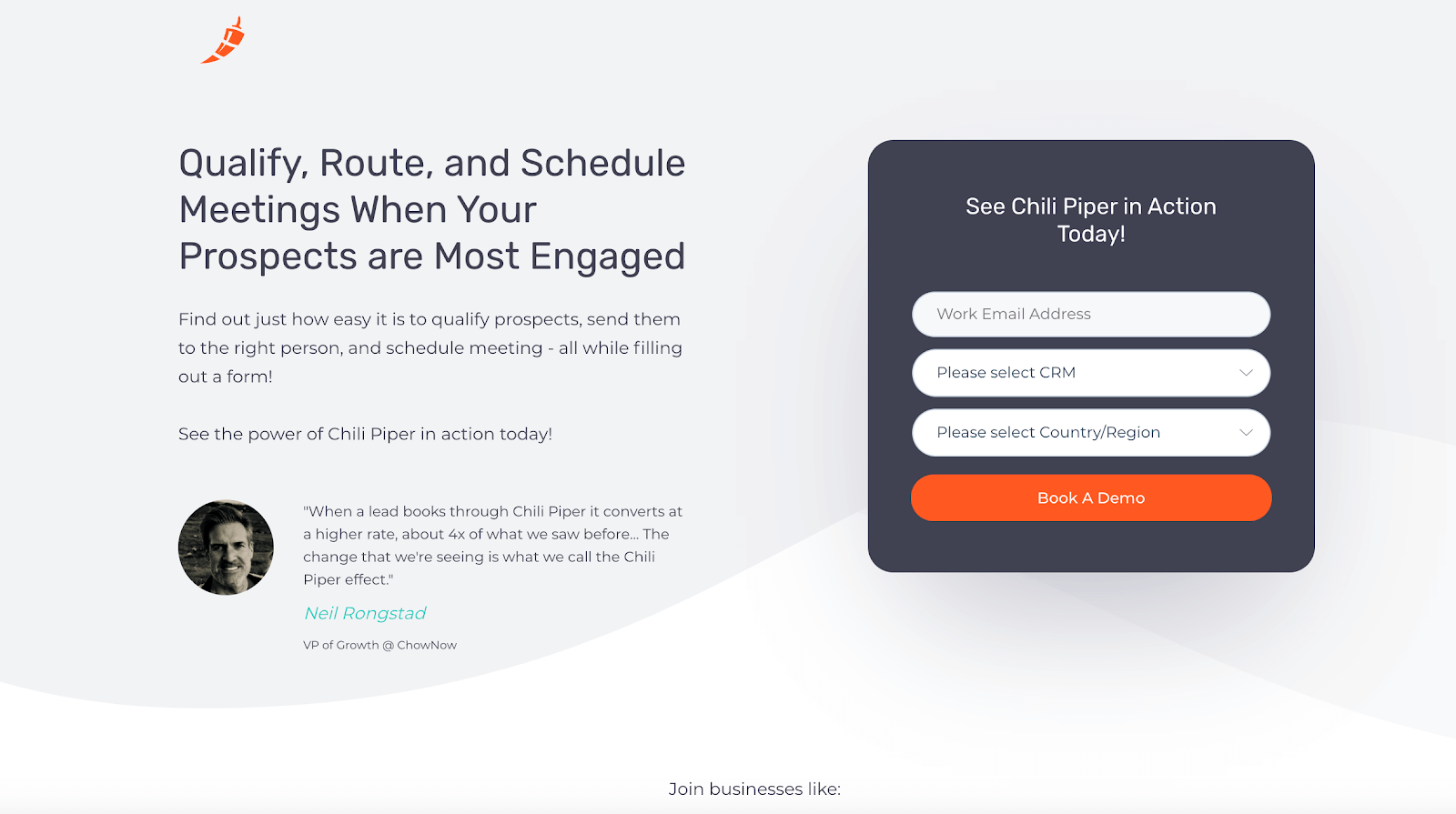 On the Chili Piper demo form, for example, we ask leads to specify which CRM they’re using and their country/region.