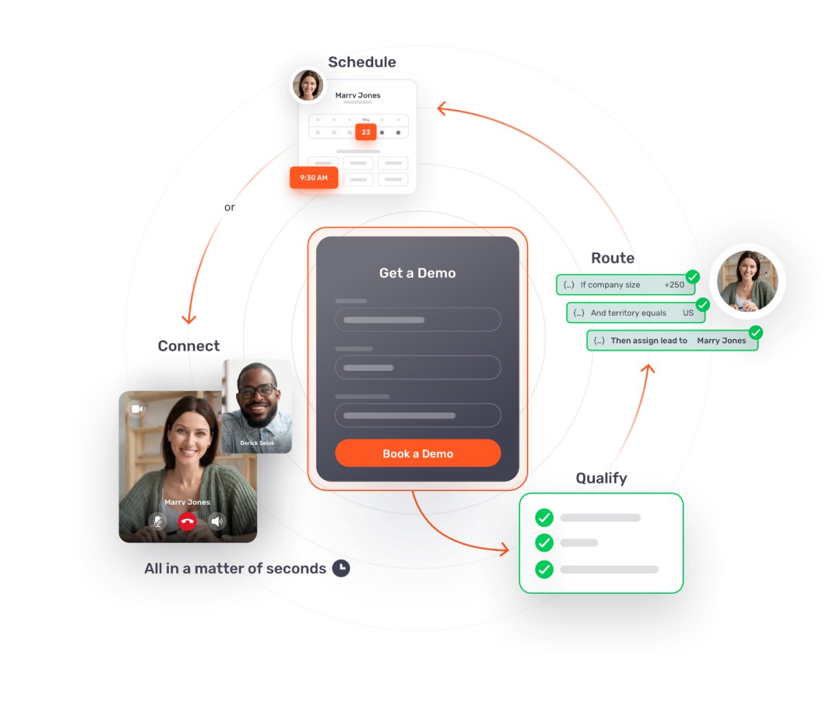Routes leads to right sales reps in real-time based on qualification intelligence
