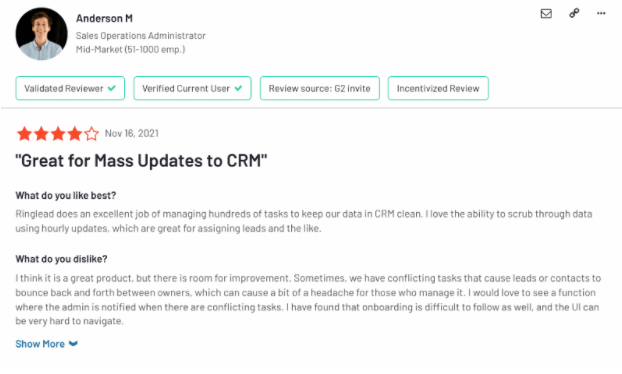 RingLead is a lead routing and data hygiene tool recently acquired by ZoomInfo. Given the nature of ZoomInfo’s product, it’s natural that RingLead lends itself more to a CRM data hygiene/de-duping use case.