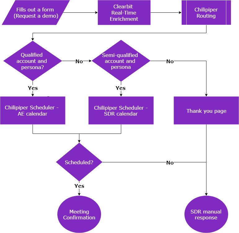 Then Gong learned about Chili Piper Concierge, a tool that plugs into forms to enable qualified leads to automatically book a meeting or start a phone call right after they hit submit. Gong saw how they could use Chili Piper to qualify and route leads based on the data that Clearbit was enriching.