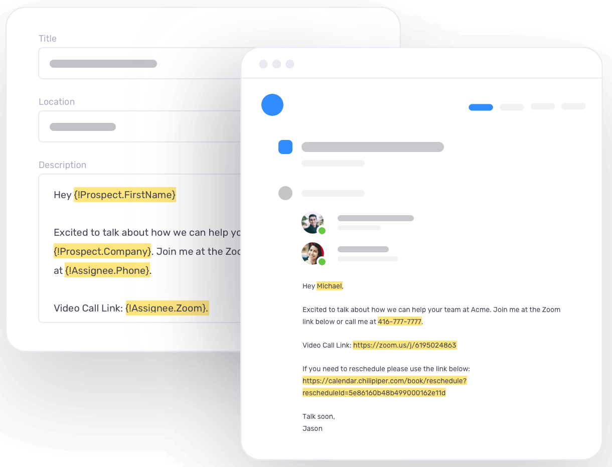 Chili Piper offers more than generic reminder emails. You can input the exact fields you want, make it personal, and show exactly who it’s coming from.