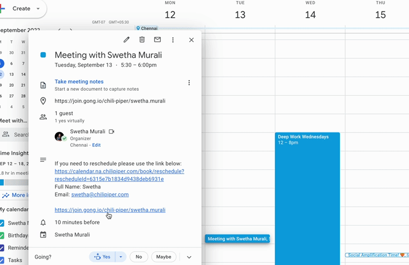 Add Gong links to your Chili Piper meetings, so your prospects can consent to be recorded before you even start the meeting.