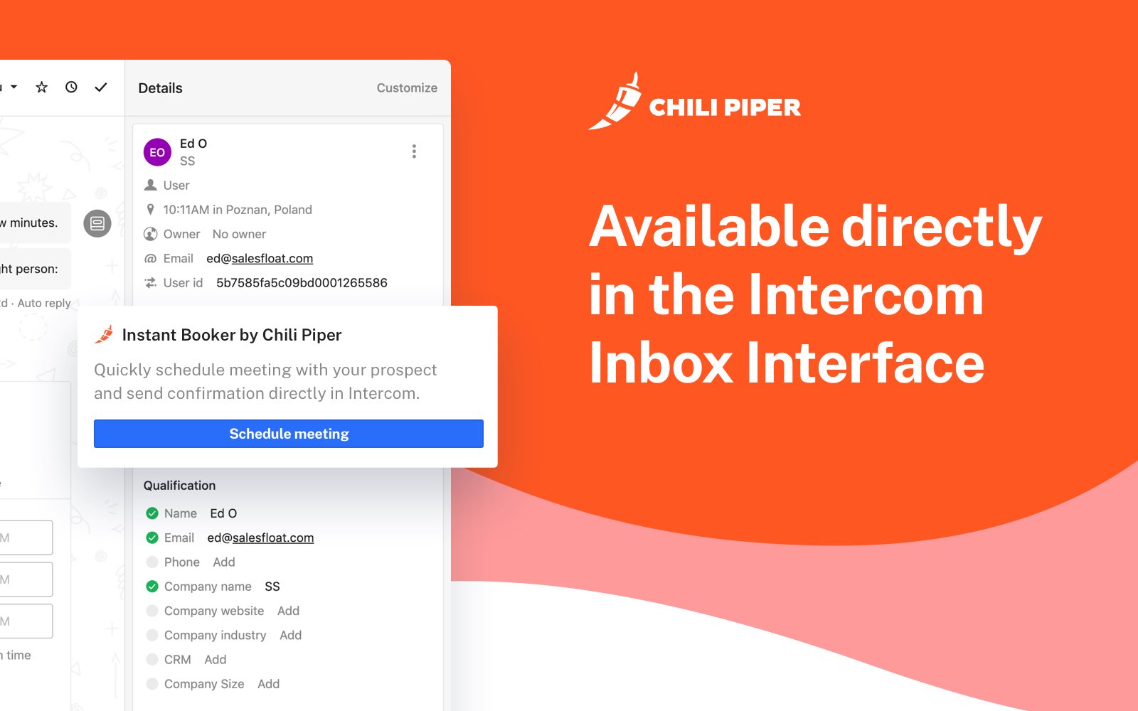 Schedule meetings with leads right from your Intercom Inbox.