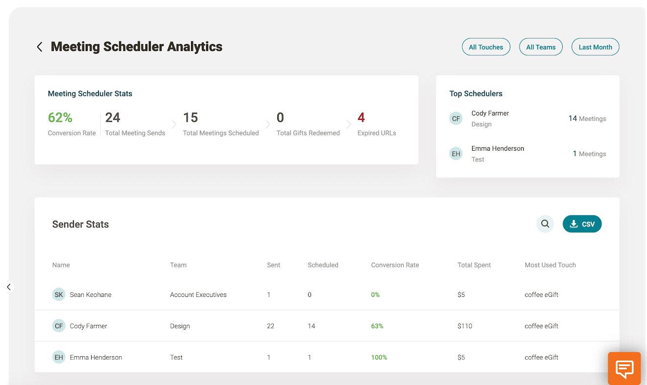 Sendoso + Chili Piper reporting will show you metrics around meetings booked and conversion rates, helping you learn what is working for whom and what isn’t.