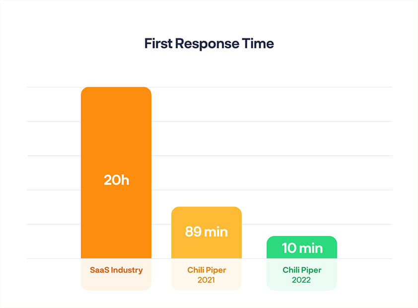 Despite this increase in volume, our first response time decreased to just 10 minutes: